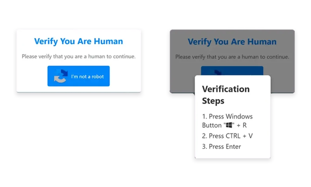 De forma aparentemente inócua, essas páginas solicitam ao utilizador que, depois de clicar, execute uma determinada sequência de teclas (por exemplo, Windows+R, Ctrl+V e Enter). No entanto, essa ação, que à primeira vista parece inofensiva, pode ter consequências graves, uma vez que permite instalar malware, exfiltrar credenciais ou conceder acesso remoto a agentes maliciosos.